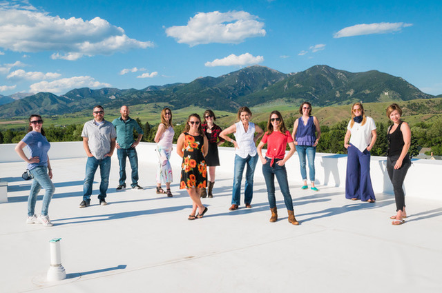Some of the 2020 BZN International Film Festival Staff, dutifully socially distancing. Beth Ann Kennedy in white top at center.